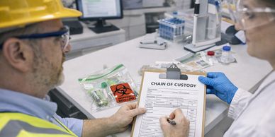 Samples are submitted to accredited laboratories using documented chain-of-custody procedures to maintain data integrity and traceability.