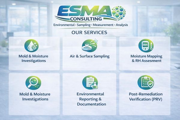 ESMA Consulting provides independent environmental sampling, measurement, and analytical reporting services. Our role is to observe, measure, sample, and document environmental conditions — not to perform remediation or corrective work. This ensures all findings remain objective, unbiased, and defensible.